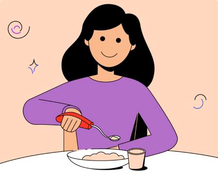 Если у человека работает только одна рука, можно использовать ограничитель для тарелки — съемный пластиковый бортик, который подходит для посуды разного диаметра. Уперев ложку или вилку в бортик, проще собрать еду. Или можно купить более тяжелые тарелки с толстыми стенками и глубоким дном, чтобы они меньше скользили по столу. Также продаются тарелки на присосках, которые крепятся к столу и не двигаются.