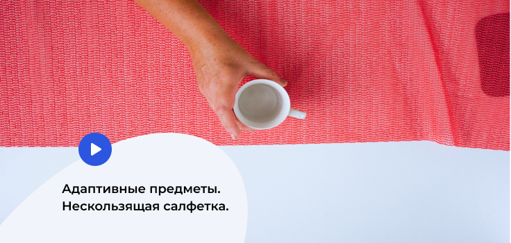 Также для людей со слабостью в руках к столовым приборам крепят небольшие отрезки лент, эластичных бинтов или широких резинок, которые притягивают предмет к кисти. Прикрепить эластичный бинт можно и к пластиковому стакану для воды с помощью клеевого пистолета или суперклея. Также продаются готовые держатели для кружки — такое приспособление поможет не уронить чашку при слабом захвате.