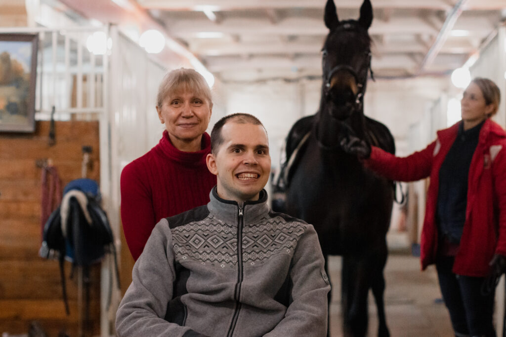 Подопечный фонда, Петя Буравцев со своей семьей, посетил занятие «коне-spa».